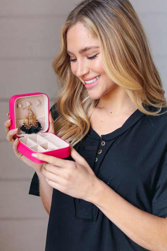 Pink Vegan Zipper Clutch Travel Jewelry Box
