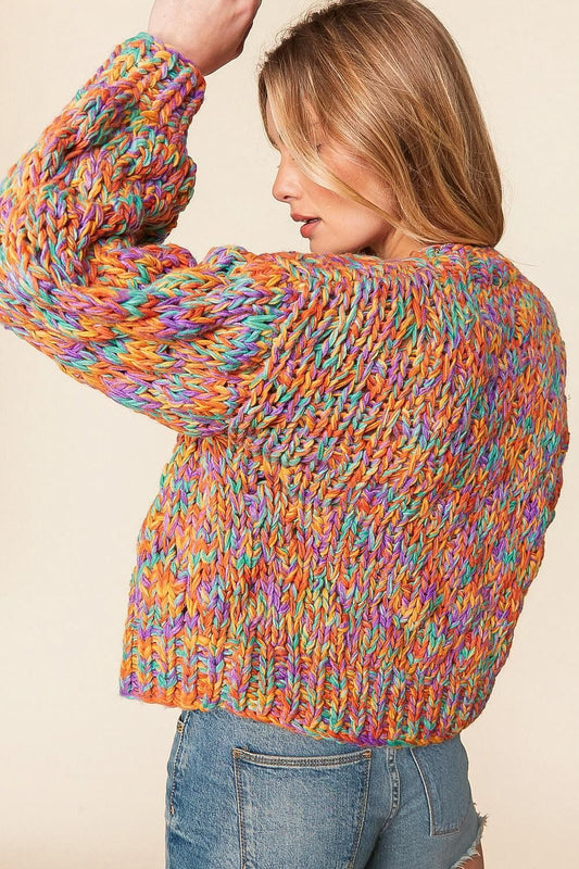 Multicolor Print Frilled Mock Neck Puff Sleeve Top
